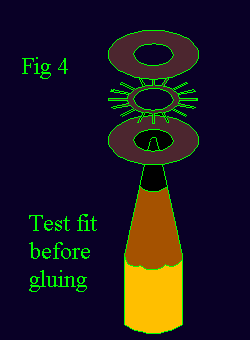 1. Find a pencil or paint handle that you can drop the PE disk brake down onto. This is to make sure they all line up when you glue them. There should be little to no movement in the disks when lined up or there may be problems when you come to glue them together (see Fig 4)