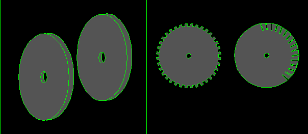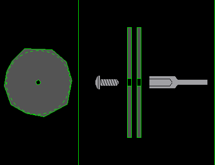 This section applies to larger scales (ie 1:12 & 1:8) steel discs. Your best bet is to use something like sheet aluminum since this can be polished up nicely. Cut the disc to the approximate circular shape (see above left). Drill a hole in the middle so it can fit on an arbor. (a thing for mounting cutoff wheels for your dremel tool)(see above right) This will allow you to chuck it into a drill or Dremel tool. Spinning the disc you can slowly file the disc into the desired circle diameter. You can also polish the surface of the disc with some sandpaper (600-1000 grit) to shine it up and to give it a used look. To make these discs drilled out take the kit part and drill out the holes. Place this over your new disc and made slight marks where you are going to be drilling. I have to warn you that this can take a long time and be very boring.
