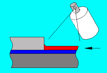 Here after the tape is removed there is a raised edge that may produce a problem later on. This edge is hard to remove without contaminating the initial layer of paint.