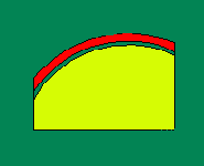 Here is an exaggerated cross section of a model finish with the bottom layer being the plastic. The middle layer is the primer while the red is the paint job. What you are going to try and do is to sand away the hills until the paint is completely flat.