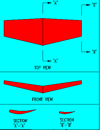With most of the material cut off we can go in with files to get the correct shape of the wings. From the top view you want to make sure the ends and middle are parallel when things are going to be glued together. If the ends are slightly out the endplates may toe in or out. For the front view if the angle isn't correct the ends of the wing may not be at the same level or the wing endplates may be slightly angled.