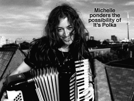 And maybe it's this Woman Alone stance, her egalitarian approach to jamming or -- in these pathologically optimistic end times -- her lyrical determination to go spelunking in the dark muck of the psyche, but everyone from Denise Benson to GirlTalk zine (who stuck her in their Women Who Rock '97 calendar) have pointed to Michelle as a kind of counterpoint to the ongoing Ye Olde Girlie Pop In Latex fetish.