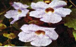 Catalog #38 - This mystical ornamental is outstanding not only as a splendid foliage plant but also for it's remarkable scent. The abundant flowers average 3" (7.5 cm ) in diameter and bloom in profusion. Hanging on racemes In some parts of the world, it is also called Skyflower and Bengal trumpet. |