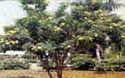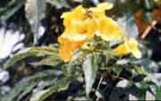 Catalog #41 - Also known as Amarillo in Spanish, this ornamental evergreen shrub grows up to 4 ft. (1.2m) high with unequal pinnate leaves that have a serrated oval structure and can reach up to 2 inches (5cm) in diameter. Golden pendulous bright yellow flowers grow to 1 inch (2.5 cm) with a funnel shaped corolla. Often grown as border trees in the Caribbean, it is also the official flower of the U.S. Virgin Islands as well as the Bahamas. |