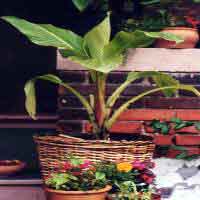 Catalog # 49 - An exceptionally fast growing species, seed germination can take 3 weeks but is well worth the wait as it can grow as high as 6-7ft. (2 m) in a summer season even in northern climes. Large fronds with scarlet tinges around the edges make it an ideal patio plant who's size is determined by its root space. Can be winterized by cutting off the shoots; root section sitting over winter in a dark area unwatered ; or it can be left to grow in a sunny area near a window. Spray mist frequently indoors as the plant feeds itself through it's long fronds. Soil should be a mixture of peat soil and sand though the species will also do extremely well hydroponically. |