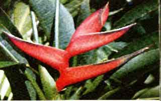 Catalog # 57 - A unique tropical variety that usually grows in the dense jungle making it a great species for indoor minimum light conditions. Also called the Holy spirit plant, the large red bracts are offset by several huge oar shaped foliage. The small pink flowers with yellow stamens grow out of the red lobster looking bracts often mistaken for the flower itself. The seed is actually 4 separate seeds. After soaking they will seperate to reveal the suckershaped hole from which the rhizome will emerge. Plant close to the surface when germinating under glass, and keep in mind the temperature of the soil should be warm. (see germination section).As the species matures, cuttings can be obtained from the shoot like rhizomes. |