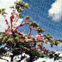 Catalog # 87 - Originally hails from Java and is also called Appleblossom cassia. This smallish tropical deciduous tree makes an ideal potted plant with a beautiful wide spreading crown of 2 inch (5cm) pale green leaves. Reddish pink blossom looking flowers grow in profusion unevenly from the stems. The hard shelled seed should be scored first then soaked and planted. |