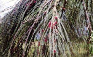 Catalog #132 - A stately tree with dark brown bark and stout erect branches hanging from the trunk all the way down to the base much like a pine tree. Makes an excellent potsized plant or bonsai.